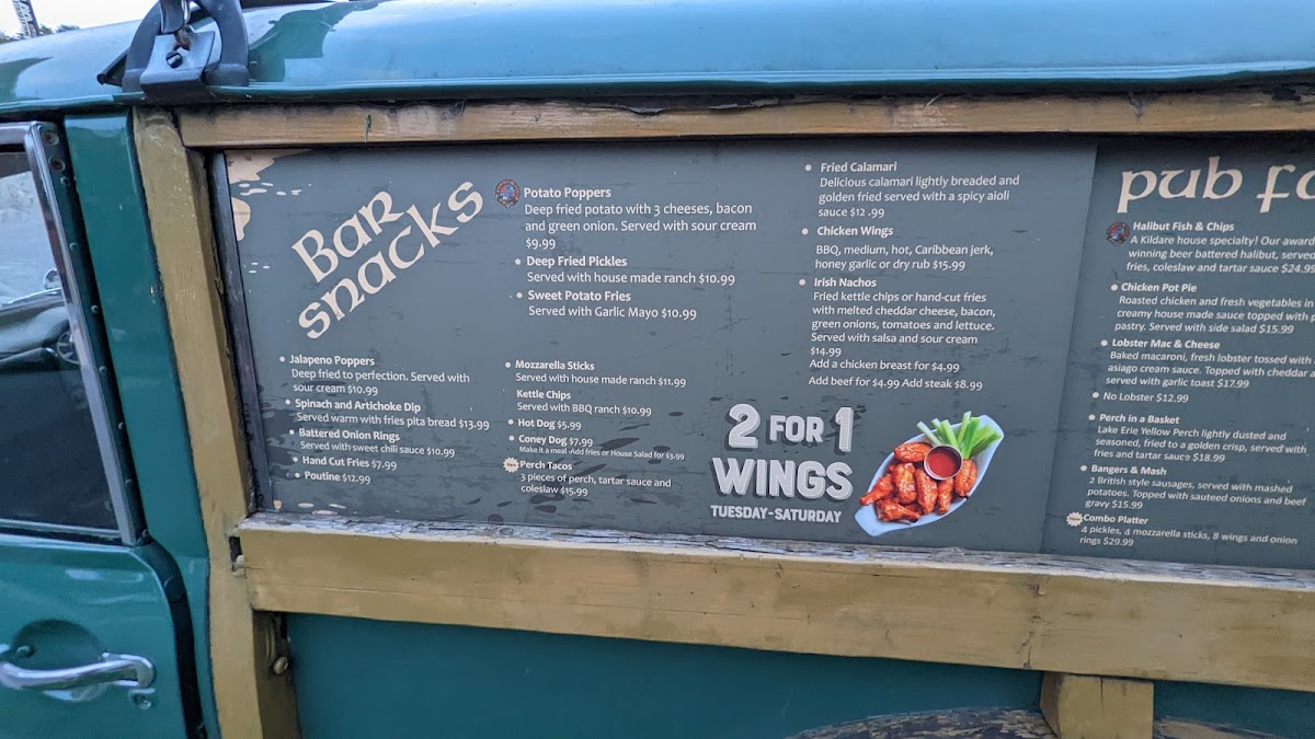 The menu is designed to accommodate quick orders as well as more relaxed dining experiences, making it suitable for lunch, dinner, or watching sports events. The variety and structure allow visitors to select from light snacks, full meals, and a range of beverages according to their occasion and appetite.